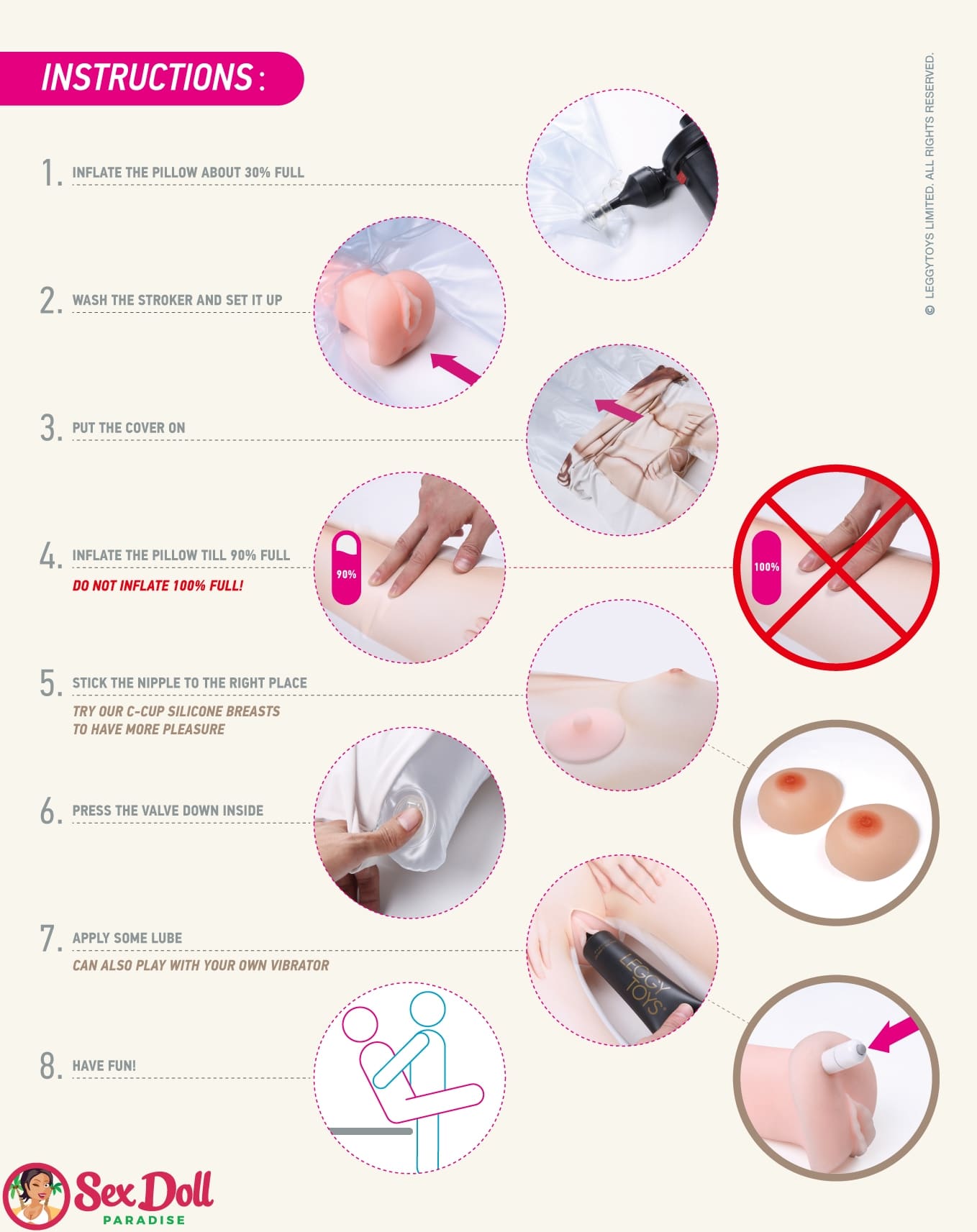 In order to start using your love doll pillow, you only need to inflate it, then you can start enjoying your sexy girl as much as you want: she never says no!